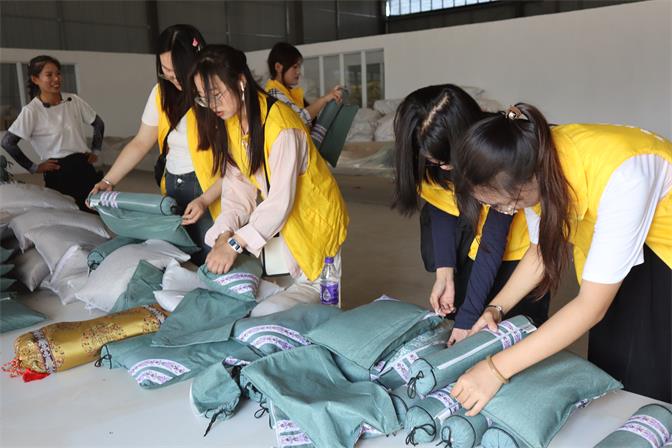 随后,团队成员前往艾草产业的产品制作车间,了解到艾草具有很强的医药价值,包集利用这一特点,进一步挖掘了艾草的经济价值,生产出具有医药价值的艾草汤包、艾草枕头等等。在负责人的指导下,队员亲自体验了制作艾草包以及艾草枕头。