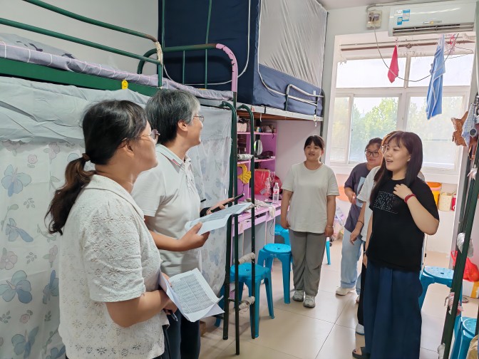 为深入了解2024级新生入学后的适应情况,了解新生们的生活状况和思想动态,2024年9月7日傍晚,学院党委书记徐燕、副书记蒋晟、辅导员们走进新生宿舍,为同学们送去关怀和问候。