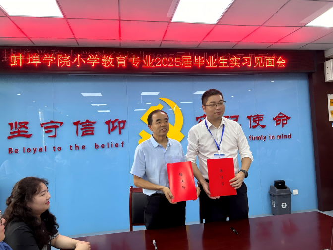 蚌埠市汤和路学校校长丁亚楠和太阳集团tyc151cc院长吴长法分别介绍了各自单位的历史沿革、办学规模、办学理念和教育教学活动。双方对基地的建立表示了充分的肯定,就实习教学的开展方式和小学教育人才的培养计划展开讨论。同时2025届小学教育专业25名毕业生为期16周的教育实习也于当日开始。该校高度重视本次实习工作,做了周密的布置和安排,给实习生配备了较强的师资,确保实习质量。