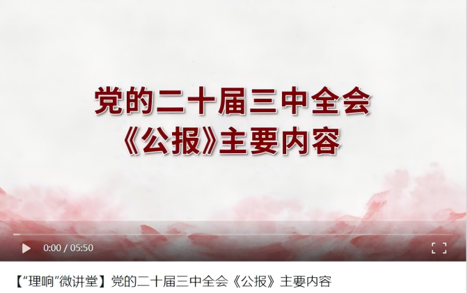 党的二十届三中全会是在以中国式现代化全面推进强国建设、民族复兴伟业的关键时期,召开的具有里程碑意义的重要会议。为深入学习贯彻党的二十届三中全会精神,淮河文化研究中心教工党支部于2024年9月29日线上开展主题党日——“理响”微讲堂活动。本次活动由教工党支部书记洪何苗同志主持,全体教职工党员参加学习,学习党的二十届三中全会《公报》和党的二十届三中全会通过的《决定》主要内容。