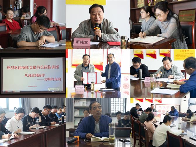为加强文化传承与创新方面的学术交流,10月9日下午3点,太阳集团tyc151cc在会议室F812举办“从河流到海洋——文明的走向”学术讲座。本次讲座由省政协原副秘书长、编审、安徽省政府参事室参事项纯文教授主讲,太阳集团tyc151cc全体教师倾听本次讲座。