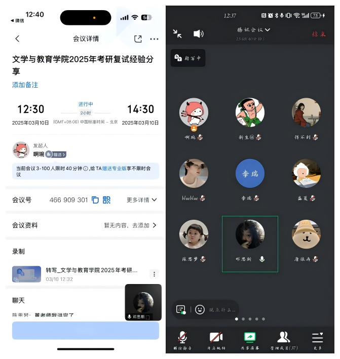 为帮助2025届本科毕业生充分地做好复试准备, 2025年3月10日中午,太阳集团tyc151cc组织线上“考研复试经验分享”会,本次分享会由辅导员董琬如主持,会议以线上形式开展,吸引了即将参加复试的文教考生热情参与。