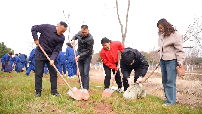 活动现场,教职工党员们挥汗如雨,有的挥锹挖坑,有的扶苗培土,有的踏土夯苗。大家分工合作,配合默契,每一棵新栽下的树苗都承载着他们对家乡的热爱和对绿色未来的期盼。在大家的共同努力下,一片片新绿在植物园内盎然生长,为春日的蚌埠增添了一抹生机。