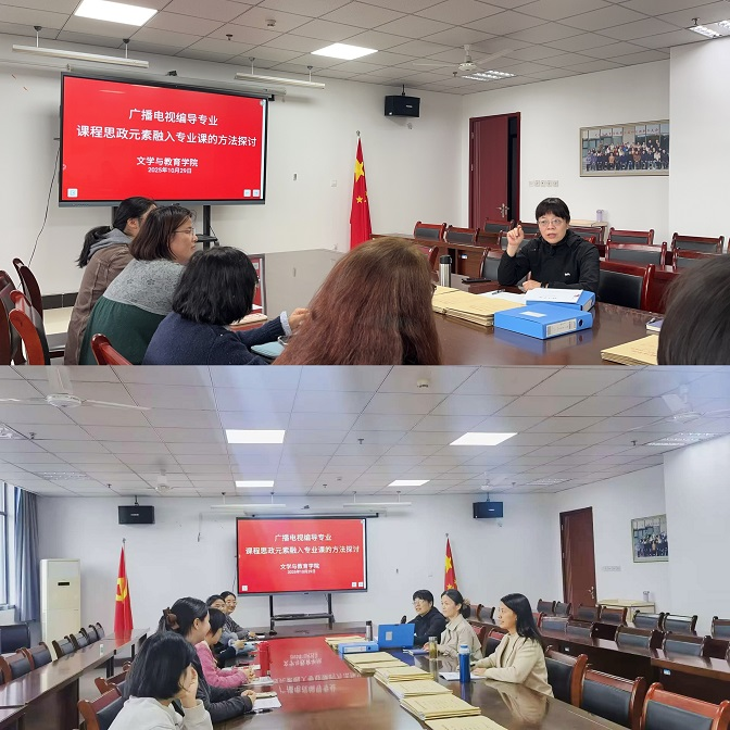 为深入贯彻立德树人根本任务,扎实推进本科教育教学审核评估迎评筹备工作,2025年10月29日中午,广播电视编导教研室于F812会议室召开“课程思政元素融入专业课的方法”专题研讨会,学校教学督导桑萍老师莅临现场指导。