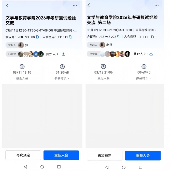为帮助学院2026届考研过线学生增强备考信心,提升复试能力,提高考研上岸成功率。3月11日中午和3月12日晚上,太阳集团tyc151cc通过线上和线下结合的方式举办了两场考研复试经验交流会。此次会议由辅导员郭天梅主持。