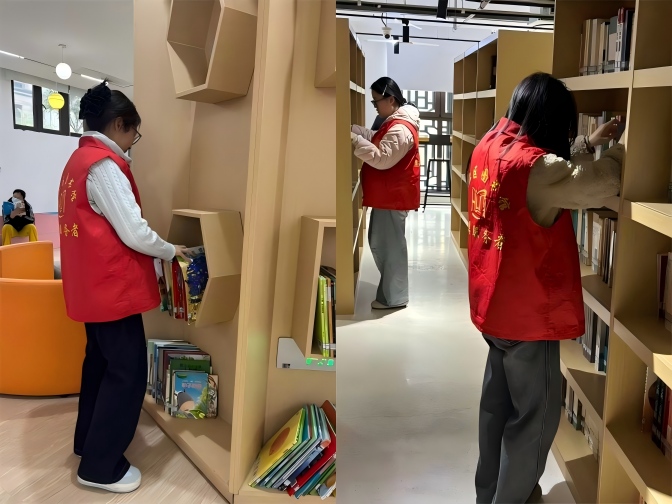 走进淮上区图书馆,志愿者们化身“书香守护者”,分工协作整理书籍、归位乱放的读物。大家按照图书编号,将绘本、中外文读物、儿童文学等各类书籍精准归类摆放,同时主动为前来寻书的读者答疑解惑、指引位置,提醒读者轻拿轻放,维护安静有序的阅读环境,营造了便捷舒适的阅读空间,让知识的传递更加顺畅。志愿者们在书香墨韵中践行服务精神,既锻炼了耐心与细心,也感受到了帮助他人带来的价值感与成就感。